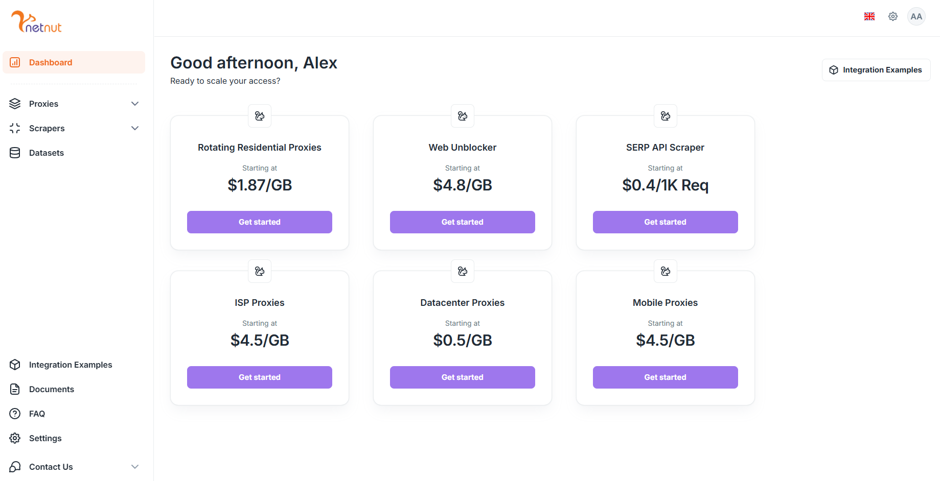 NetNut is primarily built for large-scale web data extraction and AI-driven scraping operations. Their infrastructure is oriented toward high-volume traffic, API usage, and automation-heavy environments. For Instagram agencies focused on stable long-term account sessions, careful configuration may be required to balance rotation, bandwidth usage, and session consistency.