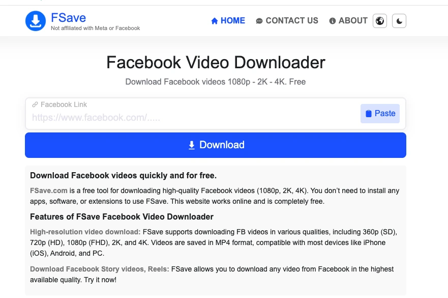 A Facebook Reel downloader solves this by grabbing the video file directly from Facebook's servers and giving it to you as a plain MP4 file, no app needed. No account. No watermark. Just the video on your phone or computer.