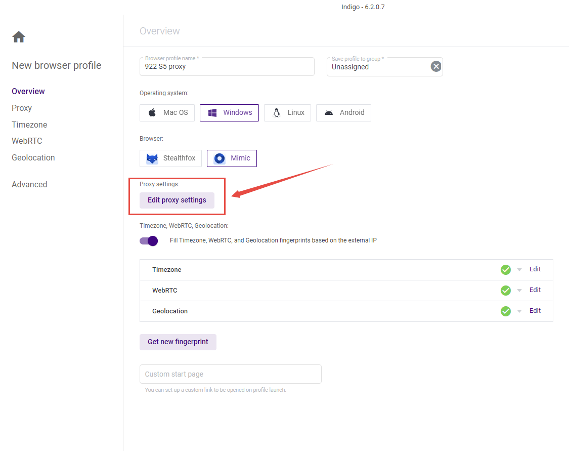 - Click the “Create profile” button to finish creating the profile with the proxy settings.