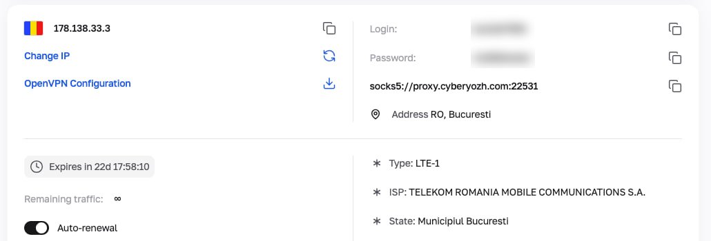 Step 1: Purchasing a proxy on the CyberYozh App website