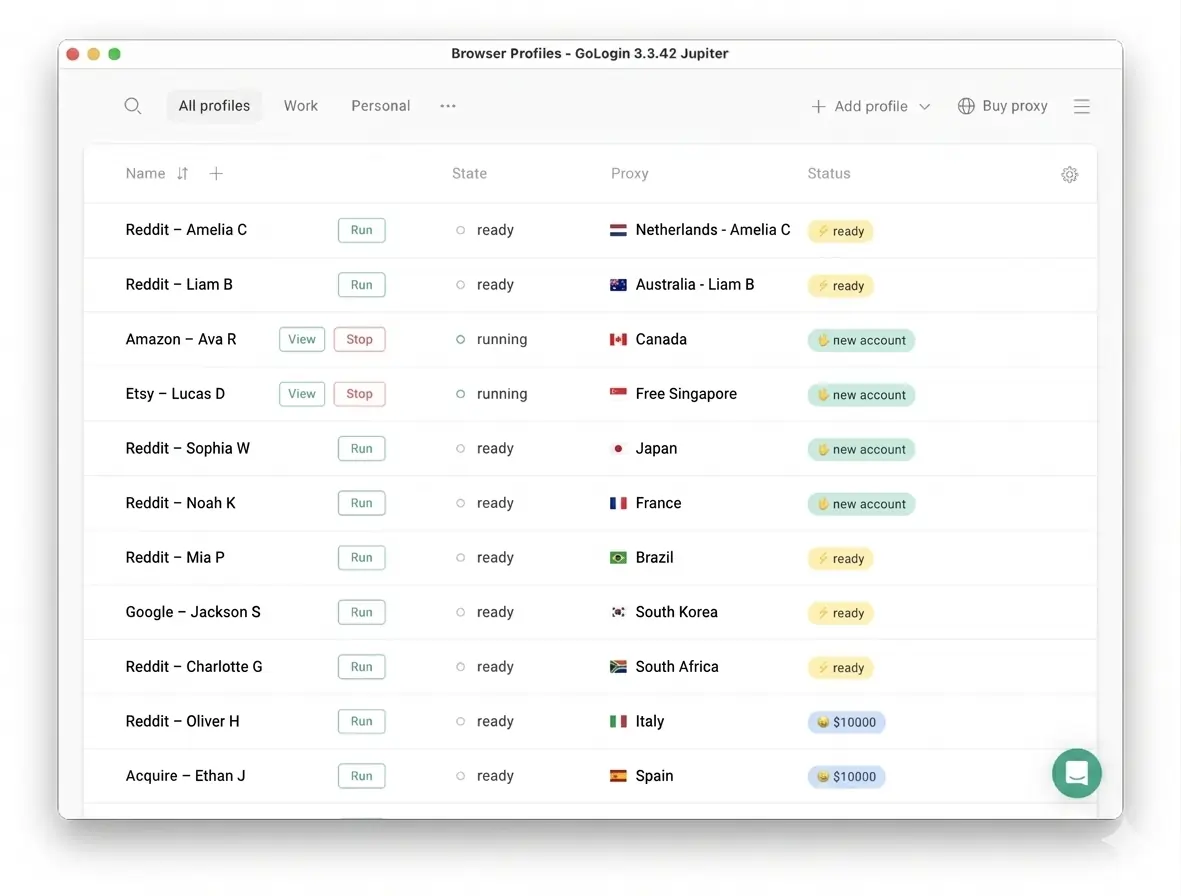 Multi-account compatibility - each account runs on a separate proxy identity with no shared IP or session overlap across accounts