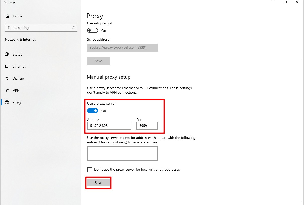 Tip: When the proxy is no longer needed, don't forget to go back to the Windows settings and turn off the "Use a proxy server" toggle; otherwise, the internet may stop working if the proxy expires.
