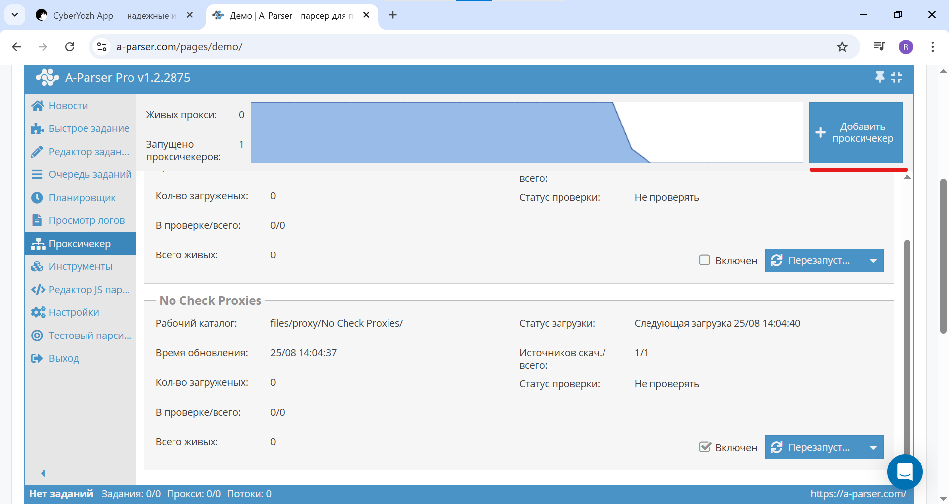 - Return to A-Parser and go to the "Proxy Checker" section in the left menu.