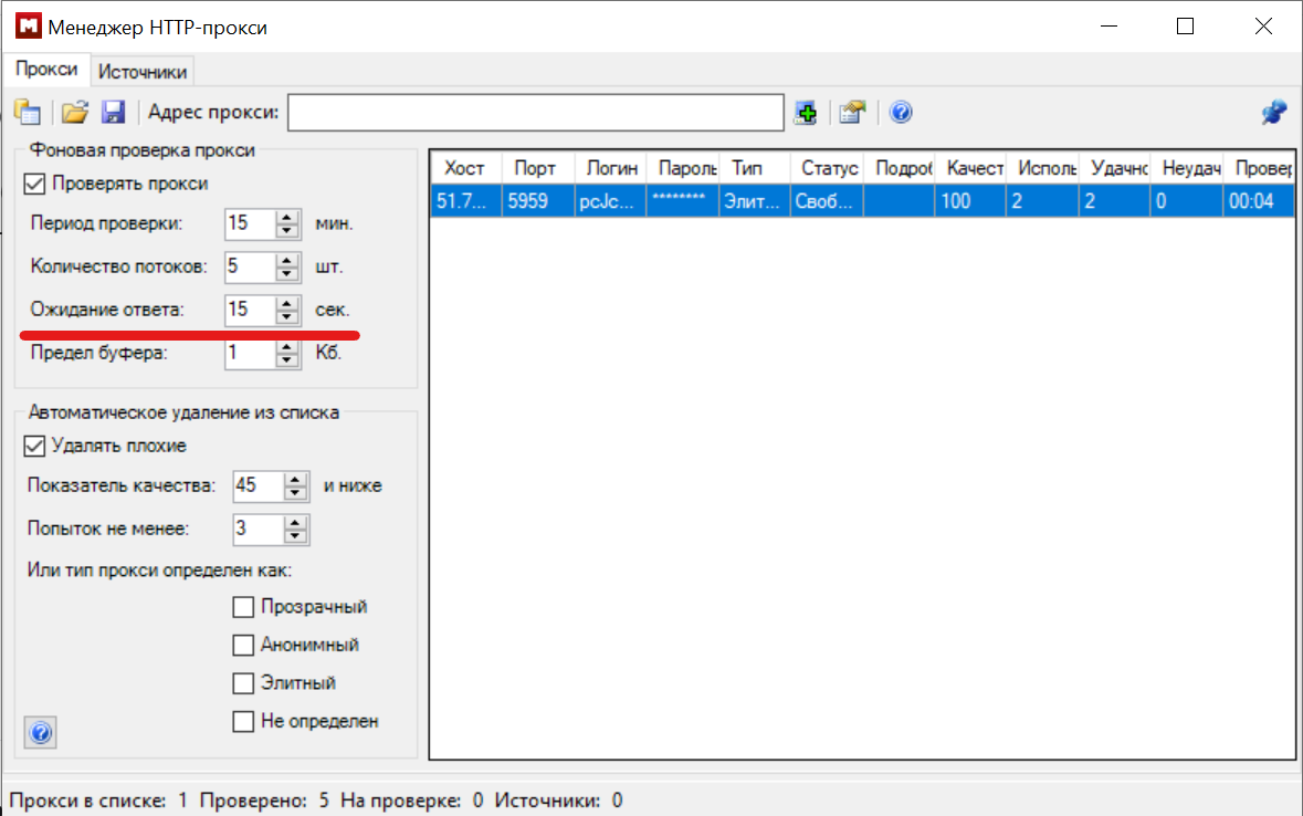 Fig. 10. "Response Timeout" parameter for configuring the timeout during background proxy server verification. Buffer Limit: This unique feature filters out servers that return massive amounts of information garbage in response to a request.