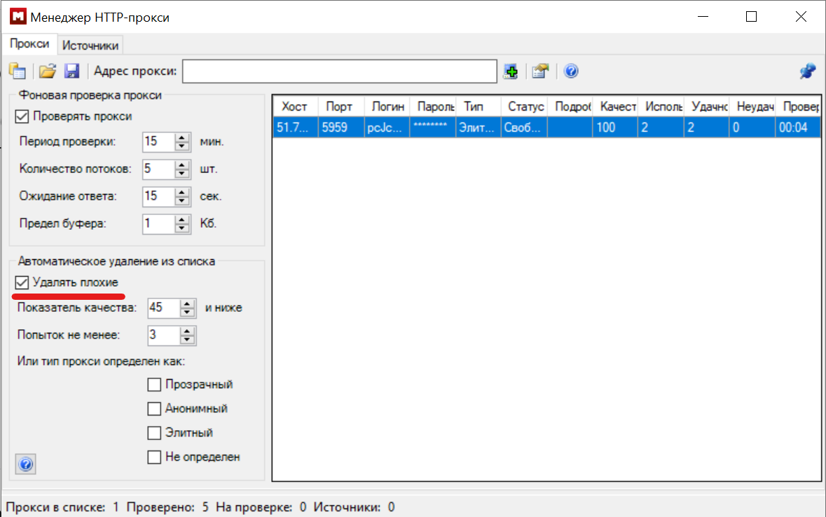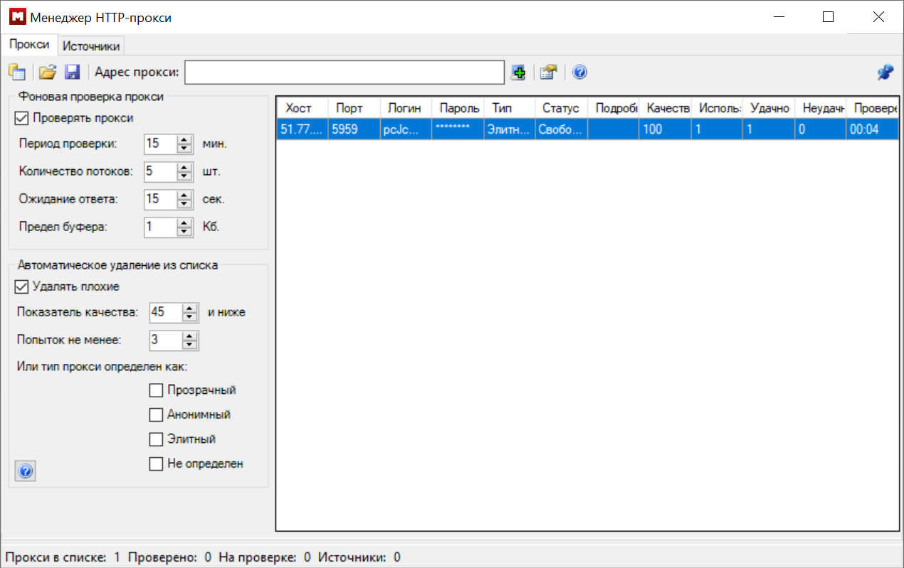 To prevent the program from wasting time on "dead" addresses, you need to correctly configure the "Proxy" tab.