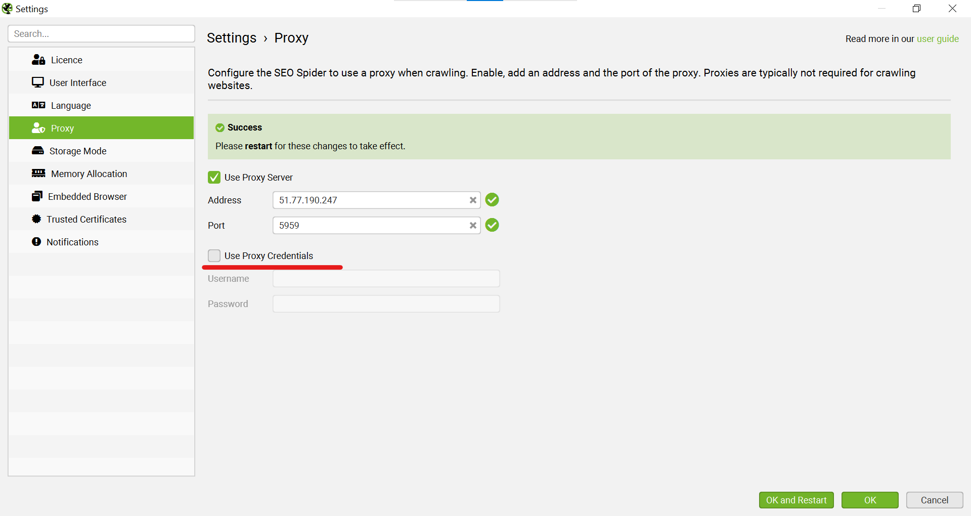 - If your proxy requires authorization (which is standard for high-quality proxies), activate the "Use Proxy Credentials" option.