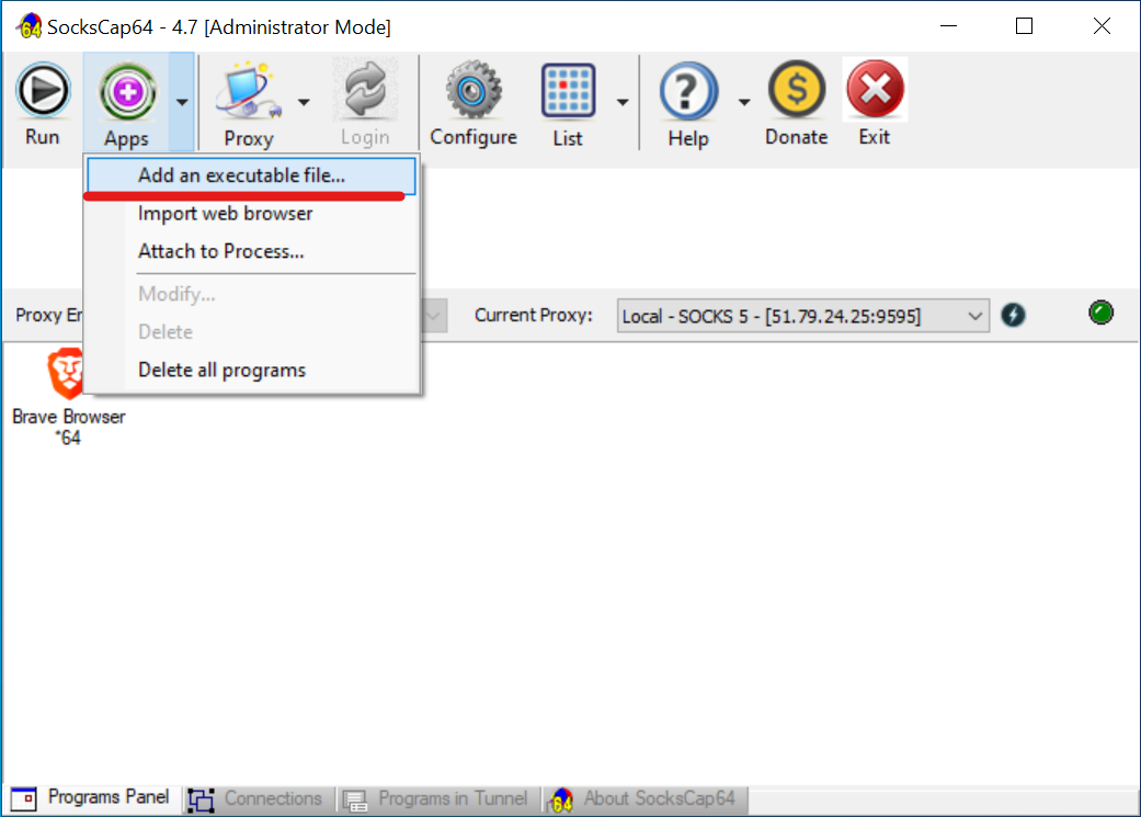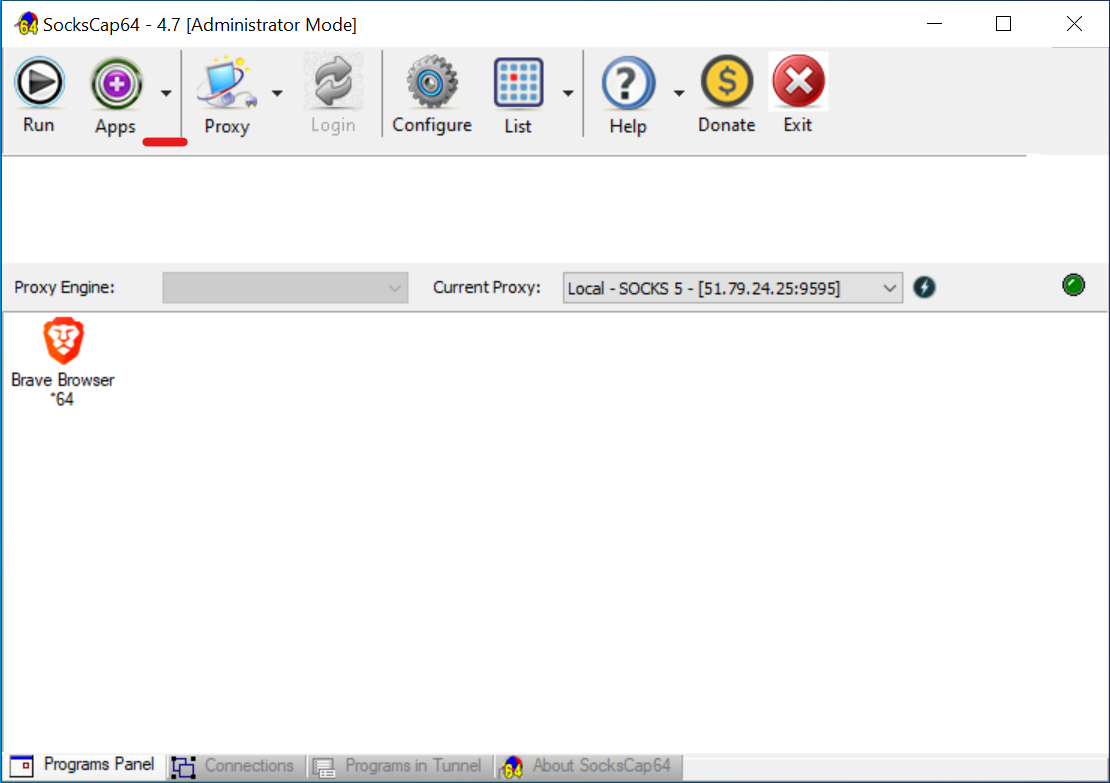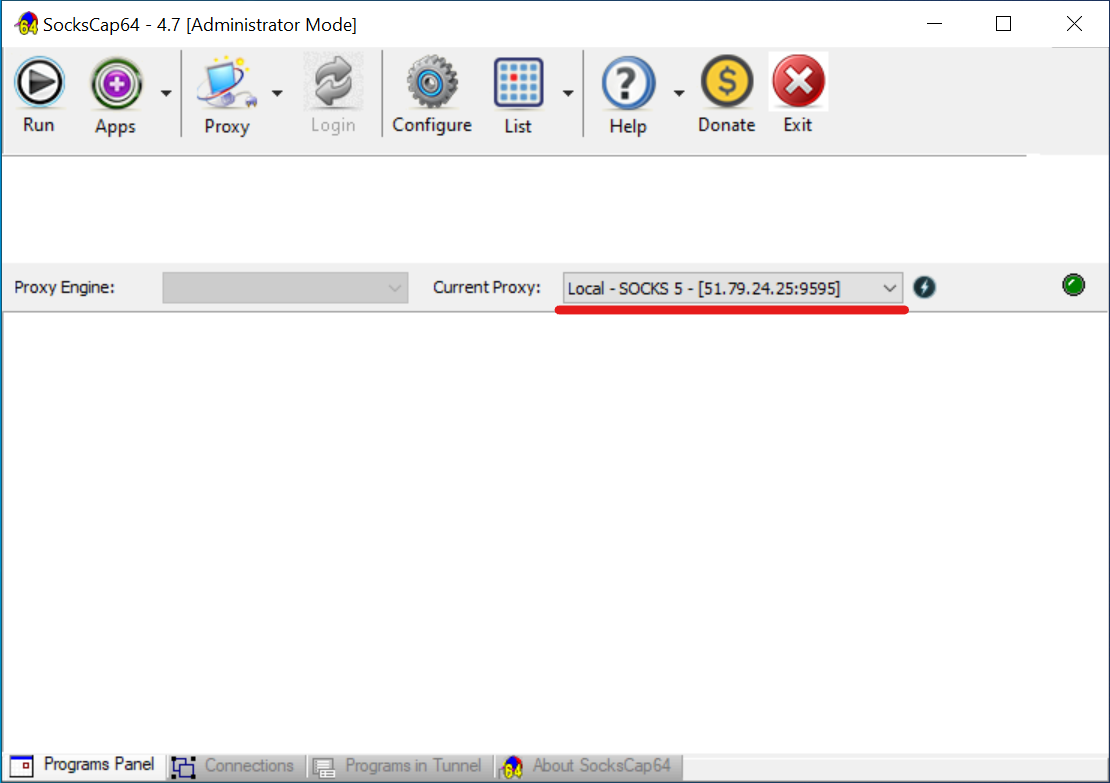 - Importante: Para que o programa funcione através do proxy, deve iniciá-lo especificamente a partir da interface do SocksCap64.