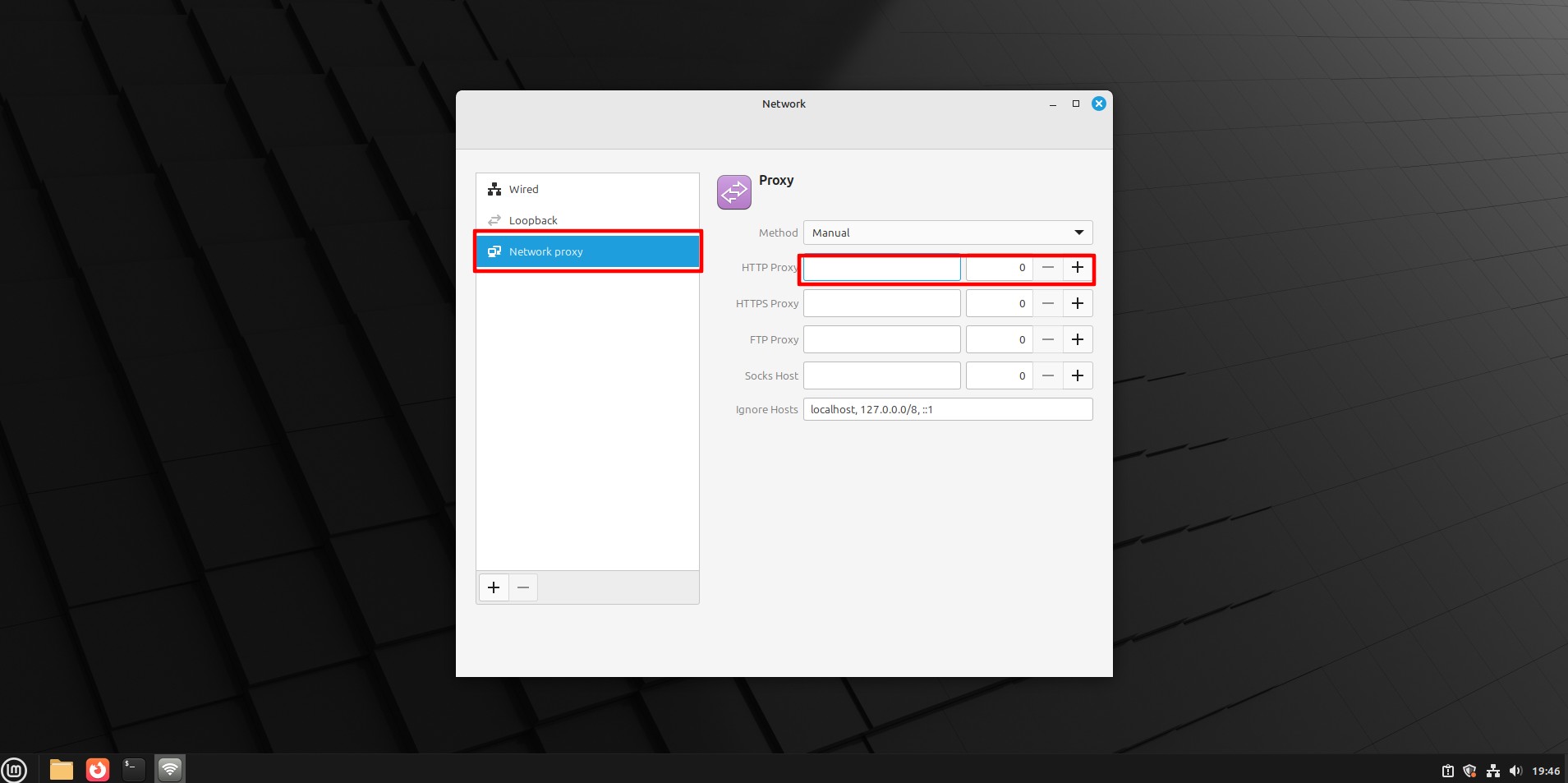 - Введите IP и Порт для нужных протоколов (HTTP, HTTPS, SOCKS).