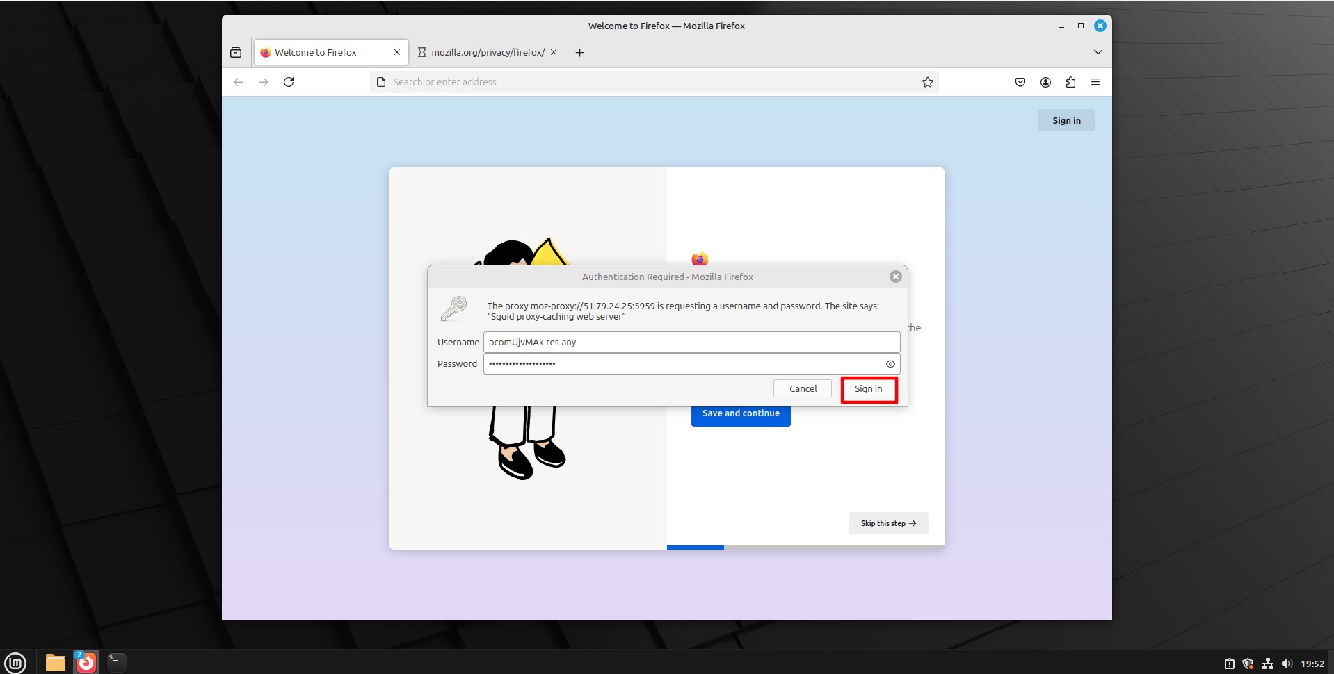 - Важно: Linux GUI часто не поддерживает ввод логина/пароля в этом окне. Авторизация произойдет позже: когда вы откроете браузер, он запросит логин и пароль во всплывающем окне.