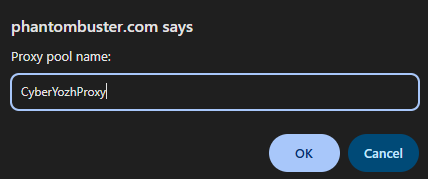 Рис. 5. Интерфейс создания пула прокси в PhantomBuster. Визуализация демонстрирует диалоговое окно с полем для ввода названия пула прокси ("Proxy Pool Name") и соответствующей формой для конфигурации.