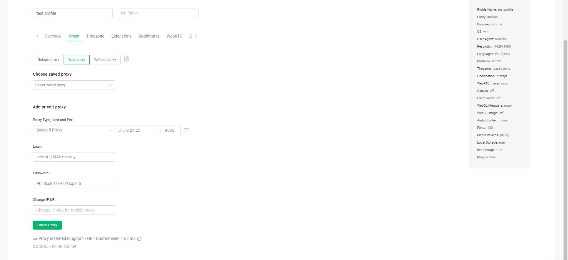 Не зберігайте профіль наосліп. Натисніть кнопку Check Proxy (Перевірити проксі).