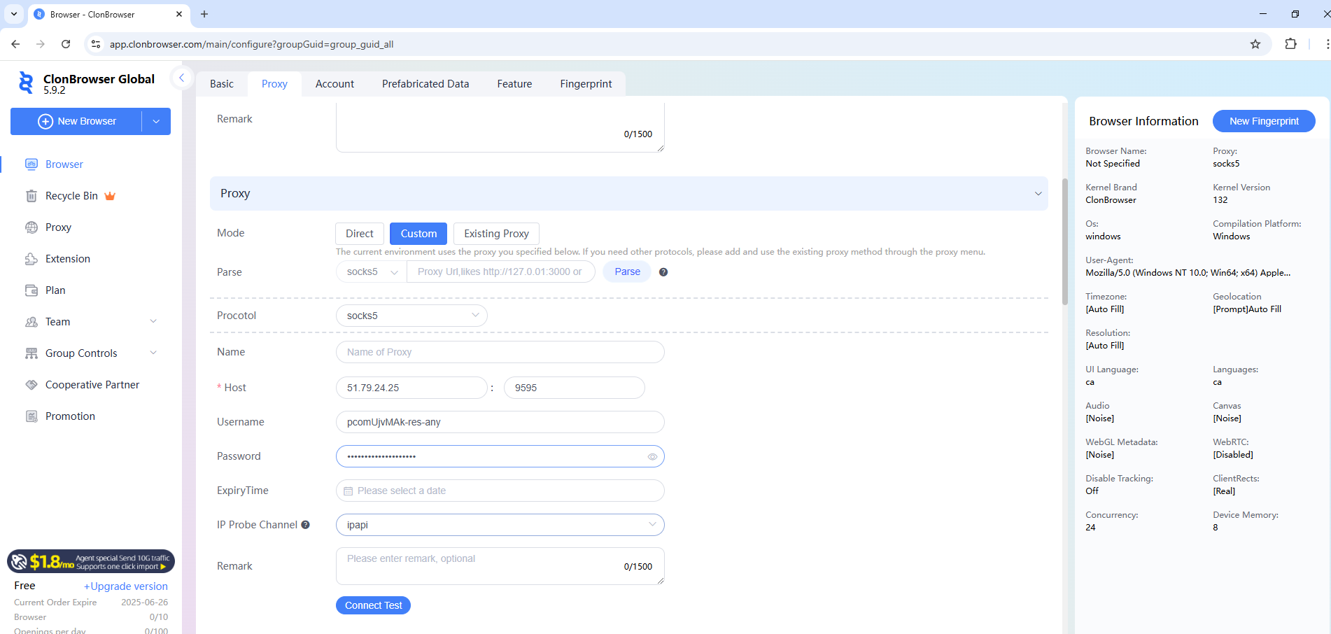 Sau khi mua, bạn sẽ nhận được dữ liệu trong bảng điều khiển cá nhân. ClonBrowser hỗ trợ nhập dữ liệu riêng biệt. Bạn sẽ cần: