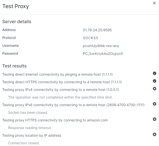 Hình 5. Hộp thoại kiểm tra kết nối proxy trong chương trình Kameleo.