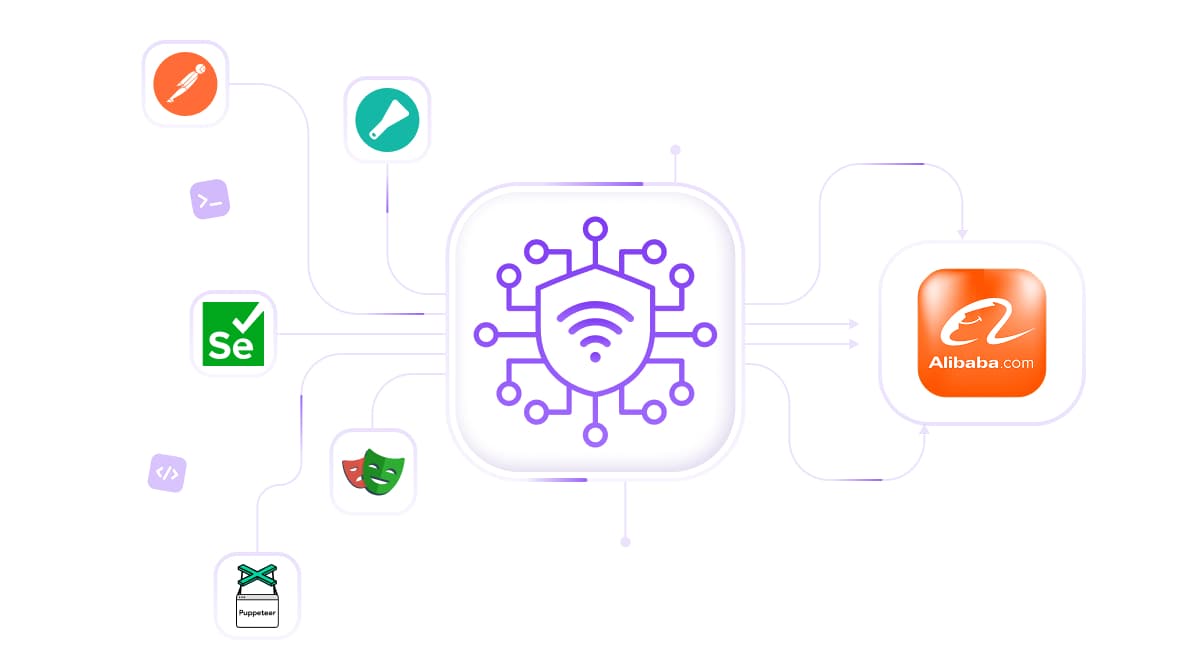 Tích hợp proxy di động, proxy dân cư và proxy trung tâm dữ liệu với quy trình làm việc Alibaba của bạn, cho dù đó là giám sát giá, xác minh nhà cung cấp, trích xuất dữ liệu hàng loạt hay truy cập danh mục theo vùng.