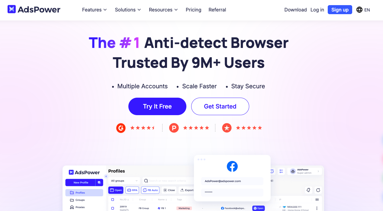 AdsPower 以其适合大批量 Facebook 和 TikTok 广告投放者而闻名。
