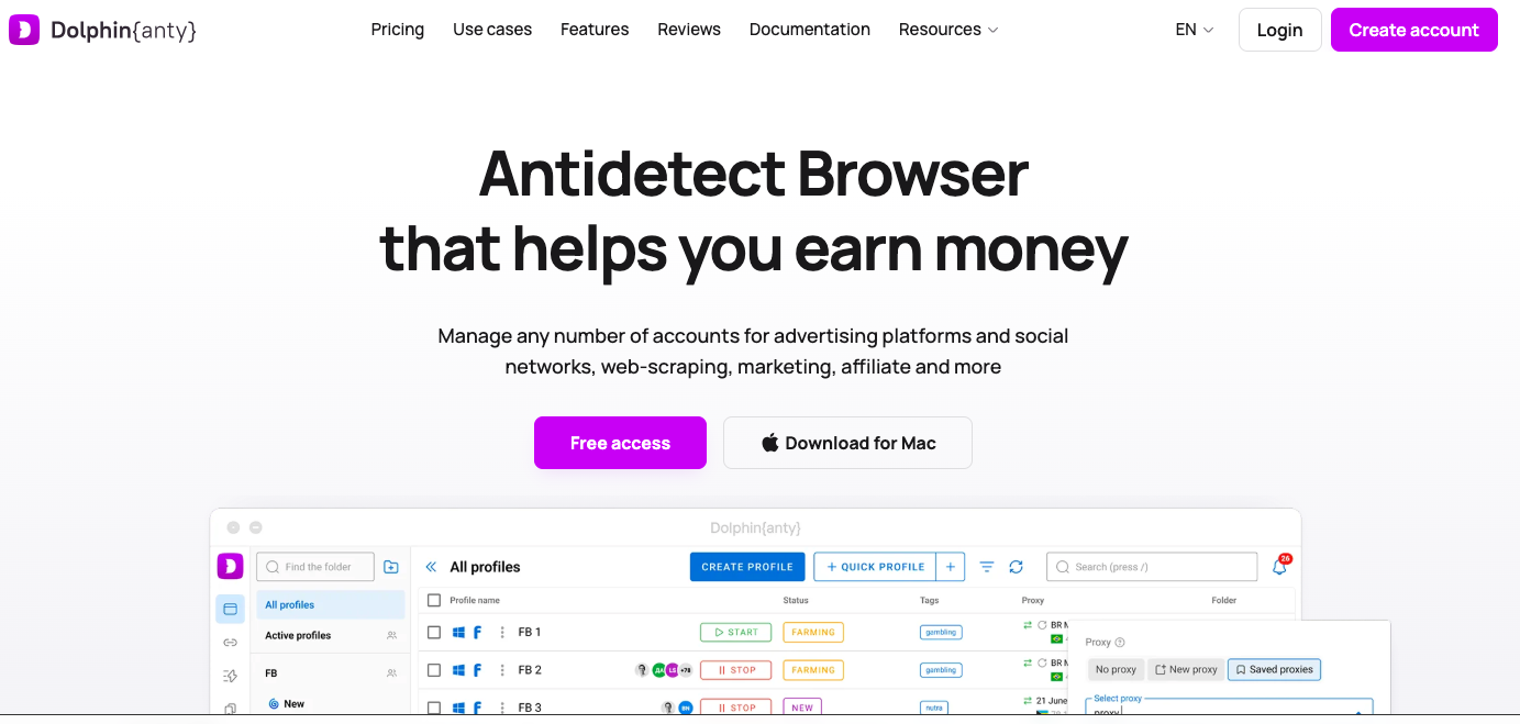 Dolphin Anty | 新手、联盟营销者 | 是 | 有限 | 否 | 免费5个配置文件 |