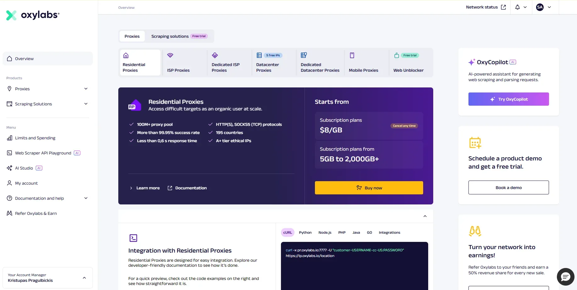 Oxylabs 是一家企业级代理服务商,拥有大型 IP 网络和爬虫基础设施,为大规模专业应用场景提供专用解决方案。