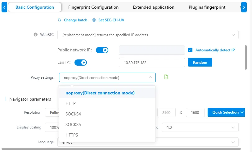 Back in the MuLogin profile creation window, scroll down within the Basic Configuration tab to reach the Proxy Settings menu. By default, the proxy type is set to noproxy.